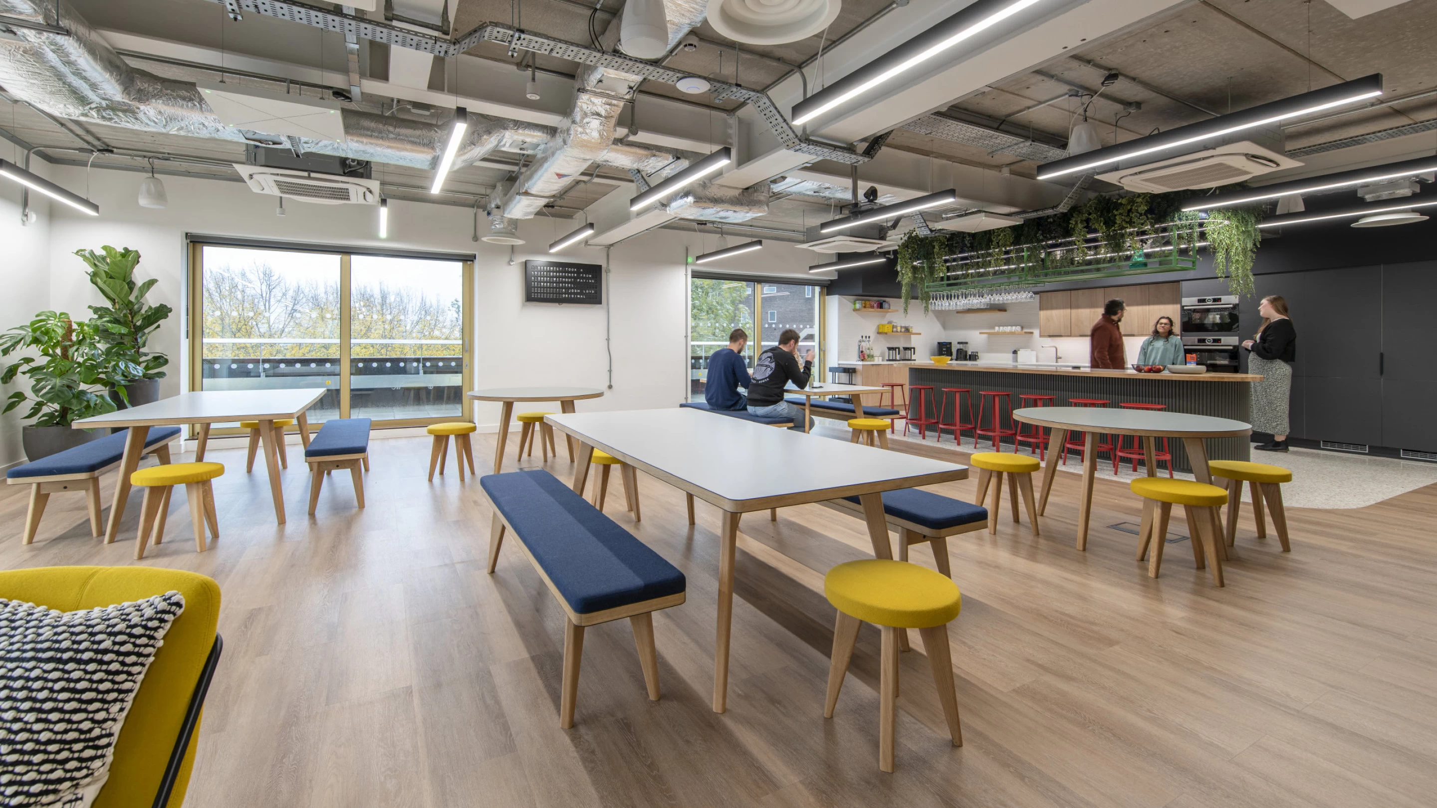 The James Burleigh pieces work perfectly within their contemporary office interiors. The high Osprey table has been especially produced with castors. This gives the user, more flexibility to move the table easily, when required. The break-out area has been completed with Osprey table and bench sets, as well as Jura circular tables. We love the colourful vibe and vision they had the space.