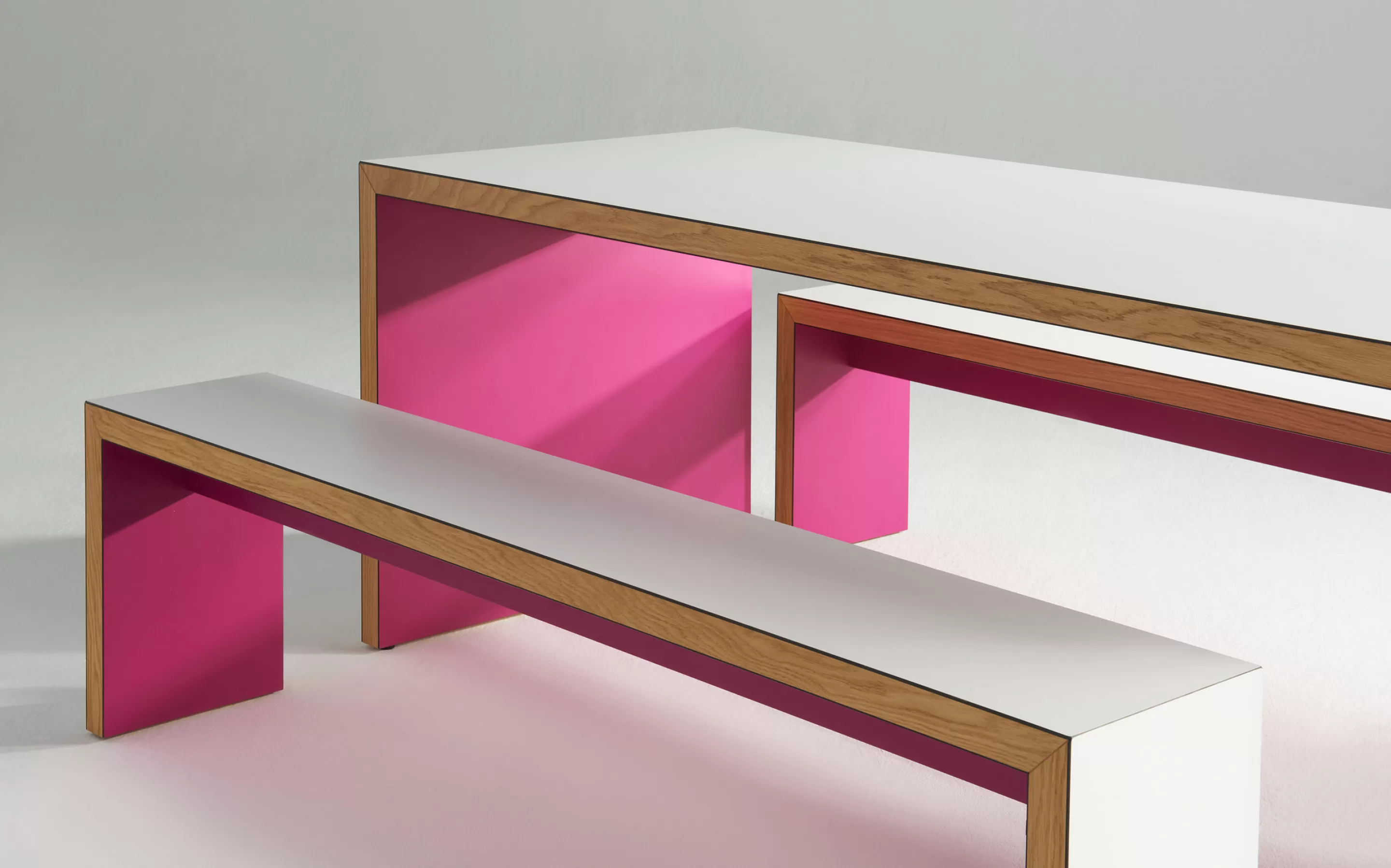 Available in a full palette of colours with beautifully finished solid wood edges, WALDO/45 can be tailored to suit a wide range of interiors. The benches offer further flexibility, with options for matching laminate finishes or upholstered seat pads for added comfort.